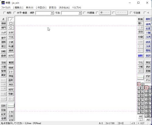 「Jw_win.jwf」を上書き保存・終了し、Jw_cadを起動して下さい。