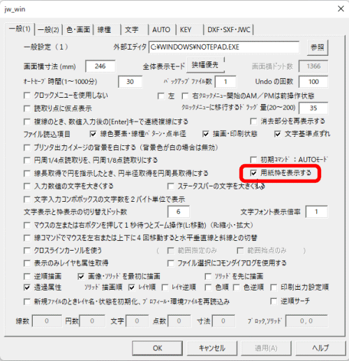 「□用紙枠を表示する」のチェックを入れます。