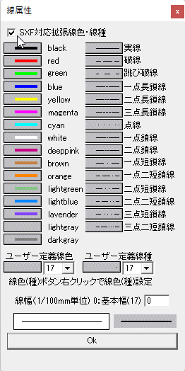 「□SXF対応拡張線色・線種」をクリックしてチェックします。