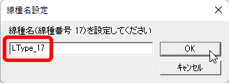 現在の線種名が表示されます。確認をして、ここに線種名を入力・編集を行ってから[OK]ボタンをクリックします。線種名の内容を空状態(何も無し状態)や空白だけ等の状態にしないで下さい。