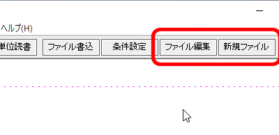 座標値をmm単位ではなく、m単位で入力する場合には、[mm単位読書]ボタンをクリックして、[m単位読書]という表示状態にしてから、[ファイル読込]又は[YX座標読込]をクリックして下さい。