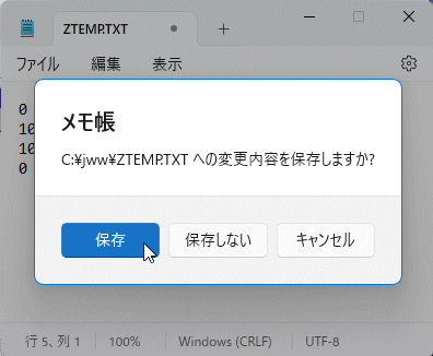 入力が終わったら、外部エディタを閉じて、変更を保存します。